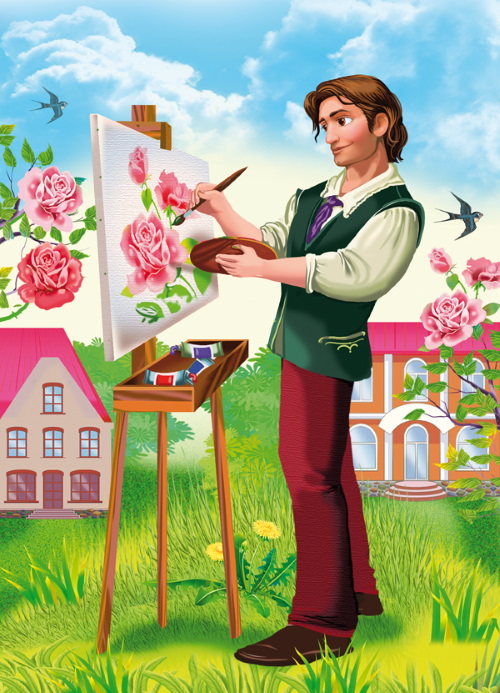 Давным-давно в одной далёкой стране жил юный художник. Он рисовал всё, что видел вокруг: уютные домики с разноцветными крышами, доброго булочника в белом колпаке с большим подносом румяных рогаликов, озорных мальчишек, бегающих по улице, соловья, поющего в ветвях кустарника, голубую речку. Но больше всего он любил рисовать цветы.