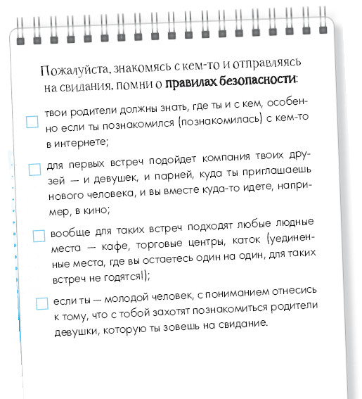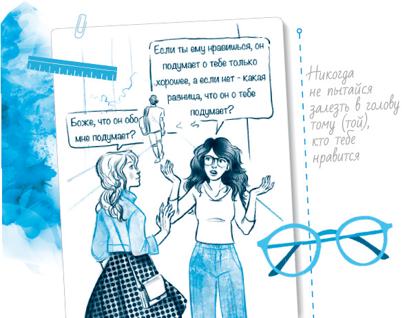 ☑ И никогда не пытайся залезть в голову тому (той), кто тебе нравится – мол, что он(а) обо мне подумает, не выгляжу ли я глупо? Запомни: ты отвечаешь только за свои поступки. К мыслям и восприятию другого человека у тебя доступа нет, ты никак не можешь ими управлять. Поэтому – расслабься. И позаботься о том, чтобы твое поведение было красивым и достойным. А оценят его или нет – это уже не в твоей власти.