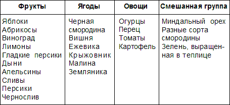 Таблица 2. Пищевые продукты, содержащие салицилаты