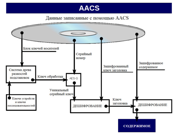 Advanced Access Content System (AACS) или же улучшенная система доступа к содержимому – это система DRM, используемая для защиты HD DVD и Blu-ray дисков, опубликованная в апреле 2005 г. и окончательно принятая 5 июня 2009 года консорциумом AACS Licensing Administrator, включающим Disney, Intel, Microsoft, Panasonic, Warner Bros., IBM, Toshiba и Sony. Система сочетает в себе различные методы, предотвращающие незаконное копирование и распространение видеоматериалов.