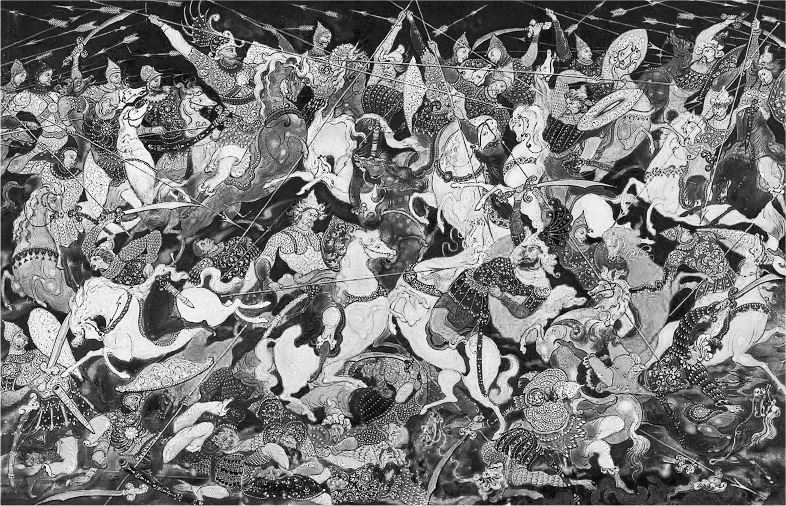 Иван Голиков. Битва с половцами. 1933 год. Палехская роспись[9]