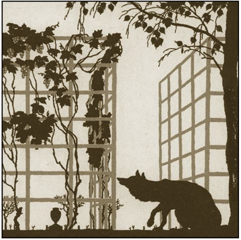 Голодная кума Лиса залезла в сад;В нём винограду кисти рделись.У кумушки глаза и зубы разгорелись;А кисти сочные, как яхонты, горят;Лишь то беда – висят они высоко:Отколь и как она к ним ни зайдёт,Хоть видит око,Да зуб неймёт.Пробившись попусту час целый,