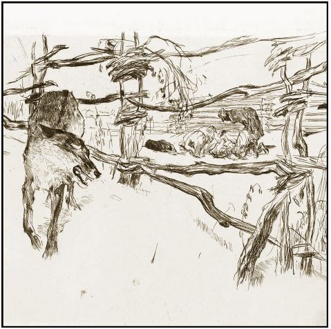 Волк, близко обходя пастуший дворИ видя, сквозь забор,Что, выбрав лучшего себе барана в стаде,Спокойно Пастухи барашка потрошат,А псы смирнёхонько лежат,Сам молвил про себя, прочь уходя в досаде: