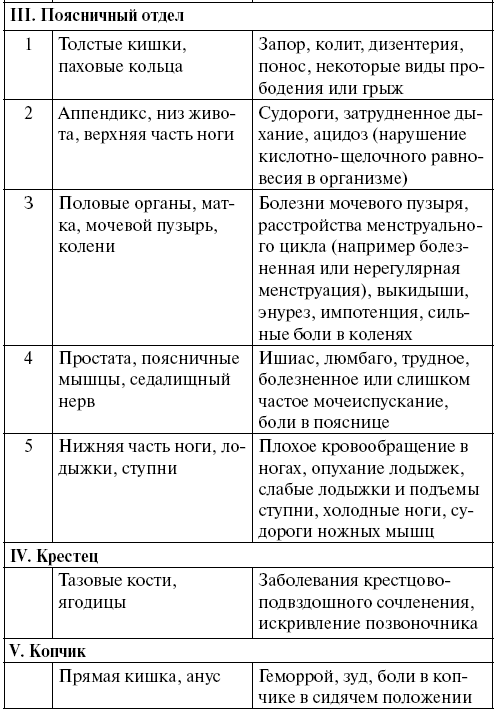 Внимательно изучите табл. 1. Может быть, болезни, которые вы безуспешно лечите, явились следствием смещения того или иного отдела позвоночника.
