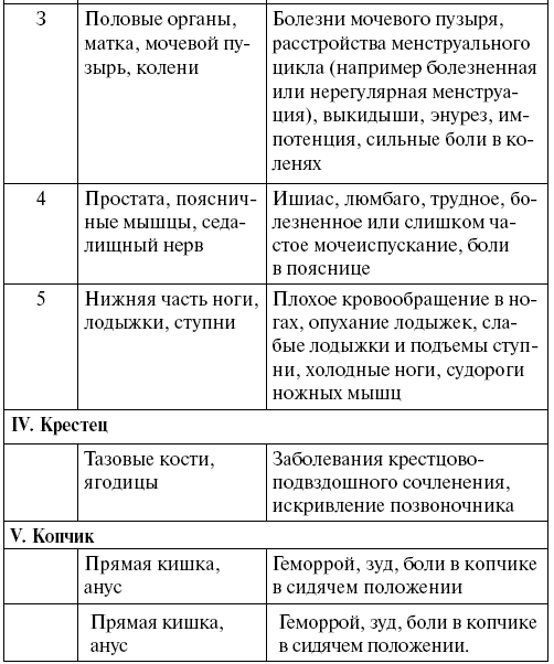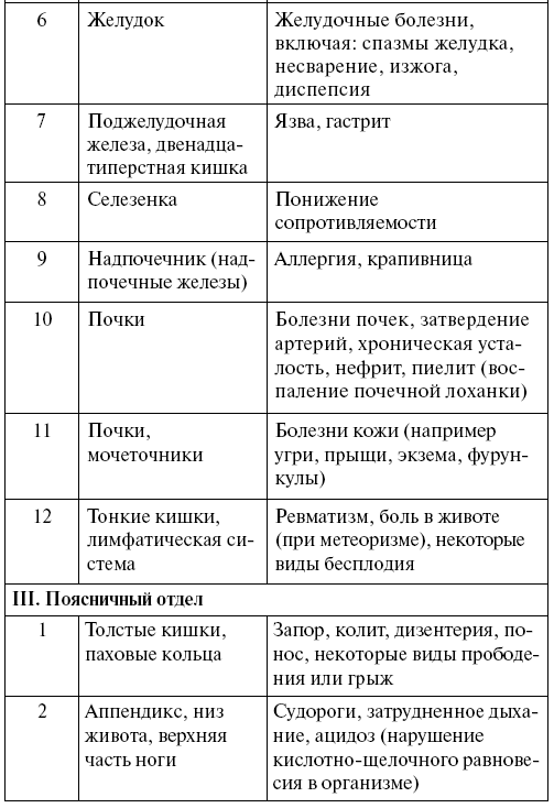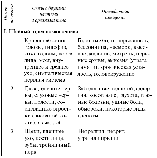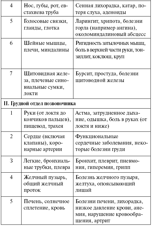 Внимательно изучите таблицу. Может быть, болезни, которые вы безуспешно лечите, явились следствием смещения того или иного отдела позвоночника.