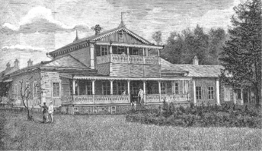 Спасское-Лутовиново, родовое имение Тургенева. Гравюра М. Рашевского по фотографии Вильяма Каррика[4]