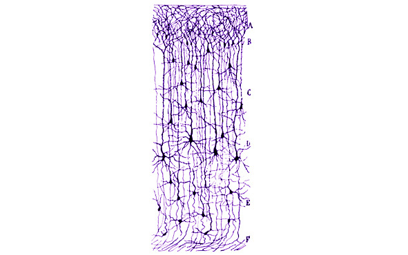 Рисунок нейронов, сделанный нейробиологом и лауреатом Нобелевской премии Сантьяго Рамоном-и-Кахалем [76]