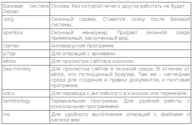 В наше время для Linux и BSD существует масса программ. Можно создать рабочую среду на основе любой из нескольких оконных сред. Нас интересует простейшая среда. Она же может оказаться самой подходящей в плане минимизации объёма программ, взятых в интернете. Она основана на командах. Это хорошо в плане простоты и возможности описания. Вот что войдёт в эту среду.