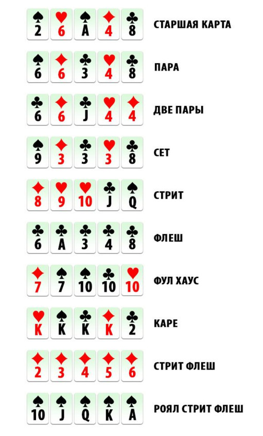 В дело в том – что в игре Омаха есть больше шансов собрать ту иную комбинацию, однако у вашего соперника тоже может быть гораздо сильней вашей, поэтому и есть гораздо больше шансов проиграть. Третий вид – это игра—Кеш, Кеш игра в Кеш не чем не отличается как в Омахе так как и в Холдеме, но есть один факт, сколько фишек у вас в кассе на столько вы и играете, где одна фишка может стоить один доллар, один доллар поставите один доллар можете проиграть. В покере существует всего 10 комбинаций, по этим комбинациям собираете лучшую руку.