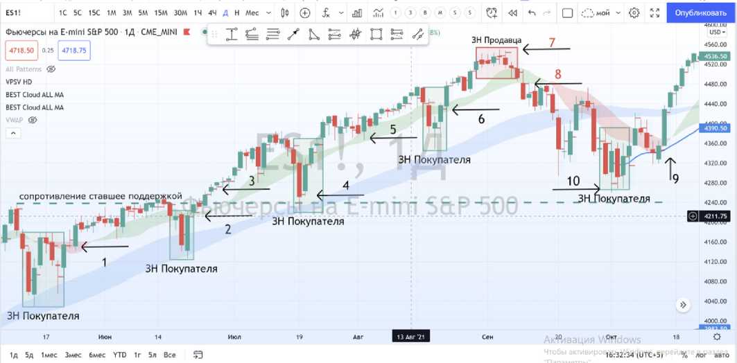 73. Приведите минимум 5 графиков с отмеченными разворотными уровнями. Точками входа.