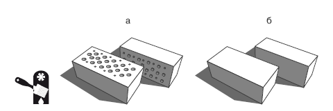 Рис. 1.2. Пустотность кирпича: а – пустотелый кирпич; б – полнотелый кирпич
