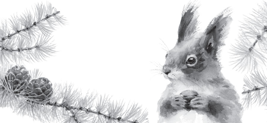Идёшь по зимнему тихому лесу и не налюбуешься. Высокие, недвижные спят сосны. Синеватые тени их стройных стволов лежат на белых, нетронутых сугробах. Тихо в спящем лесу, но чуткое ухо улавливает живые тонкие звуки. Вот где-то застучал и вскрикнул, перелетая с дерева на дерево, пёстрый дятел. Серый рыжеватый рябчик с шумом сорвался с ветки, скрылся в лесной глубине. Проказница-белка теребит у вершины ели спелую шишку, роняя на снег тёмные лёгкие шелушинки, смолистые обгрызенные стерженьки. Бесшумно пролетели у края леса, закричали голубоватые сойки.