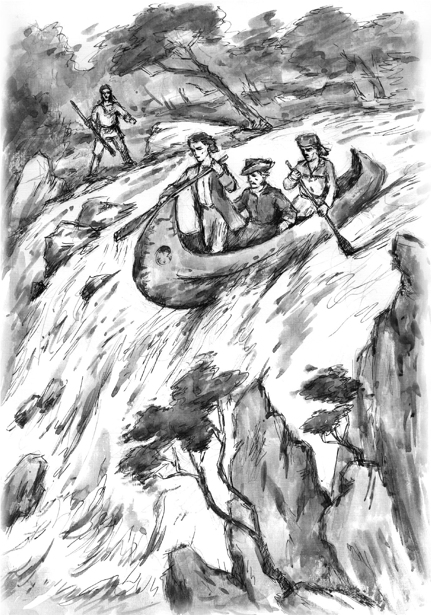 Ləpirçi izah etdi ki, sahil açıqlıqdır, hindular belə yerdə olmurlar. Onlar qalın meşələrdə hiylə işlədib qəfildən hücum etməyi xoşlayırlar. Bu vaxt Casper lazımi yerə çatdıqlarını görüb qayığı sahilə yaxınlaşdırdı. İki hindu, İyun Şehi və Meybl sahilə düşdülər. Qayıqda Ləpirçi ilə iki dənizçi qaldı. Sahildəkilər bu üç adamın qayığı şəlalədən necə məharətlə keçirdiklərinə maraqla baxırdılar.