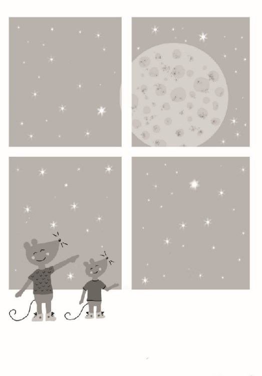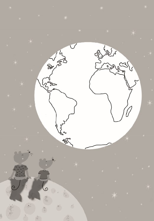 Once on Earth they organized a moon cheese party. Elena and Javier, their parents, made a big poster with their names on it. All the mice from the house came, as well as some from nearby houses. Everyone came, even their cousins. Pilar, Guille, Gonzalo and David were excited to be able to try a piece of Moon and listen to the adventures Alex and Alvaro went through to get it.
