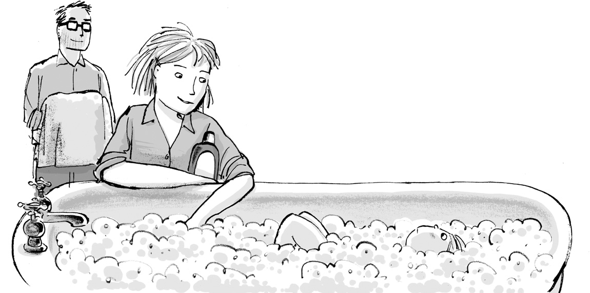 “Babies are a bit different to hamsters.” Dad rinsed the bubbles from Iggy’s hair. “And anyway, you’ll be at school.”