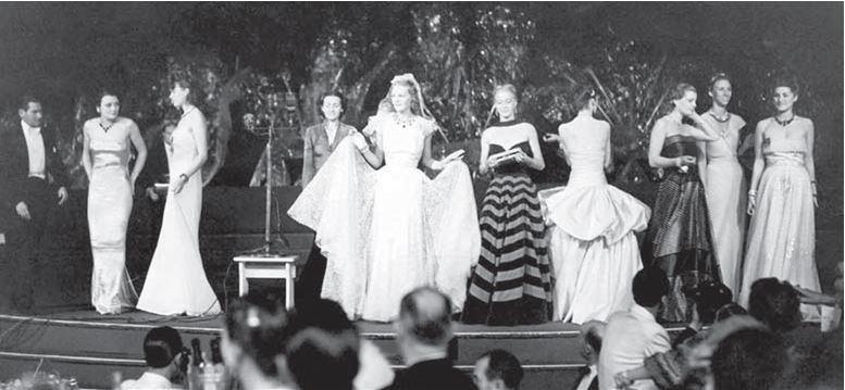 Показ вечерних платьев в Каннах в конце 1930-х годов.