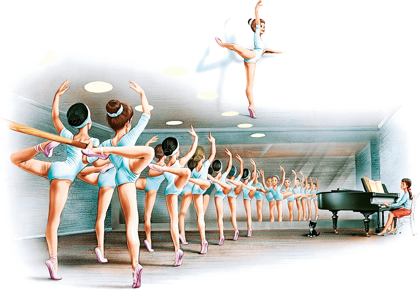 – Итак, мои птенчики, поднять руки венчиком! Головки держим высоко, будто на них короны! Нагнулись – выпрямились, смотрим вверх! На сцене важно каждое движение. Какой должна быть балерина?