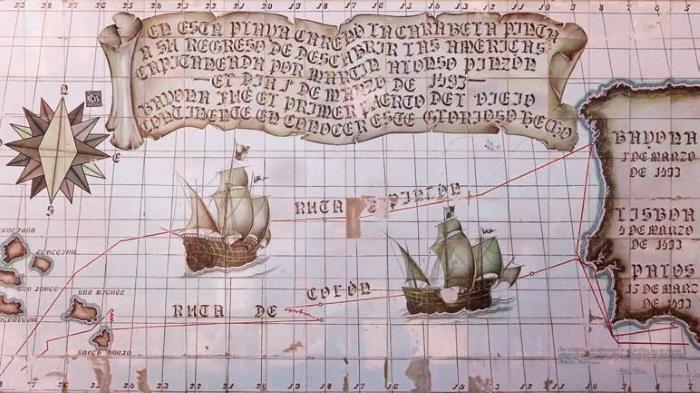 Керамическая карта с изображением маршрута кораблей Колумба, изготовленная в память о его великом плавании. Байона, 1963
