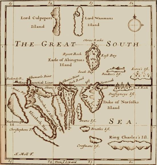 Карта Галапагосских островов, составленная английским флибустьером Уильямом Коули. Конец XVII в.