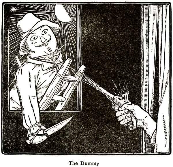 And when the lord saw the dummy coming in at the window he shot his pistol at it and it fell down. He rushed downstairs and out into the open air looking to see if he had shot Will.