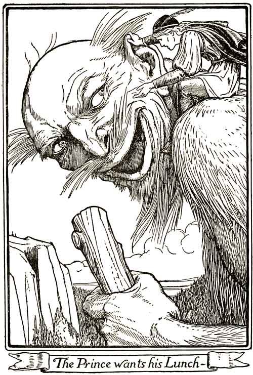 Then the giant knew that he had got the right Prince and took him home to his castle. When he got him there he gave him his supper and told him that he would have to work for him and that his first work would be next day to clean out the stable.