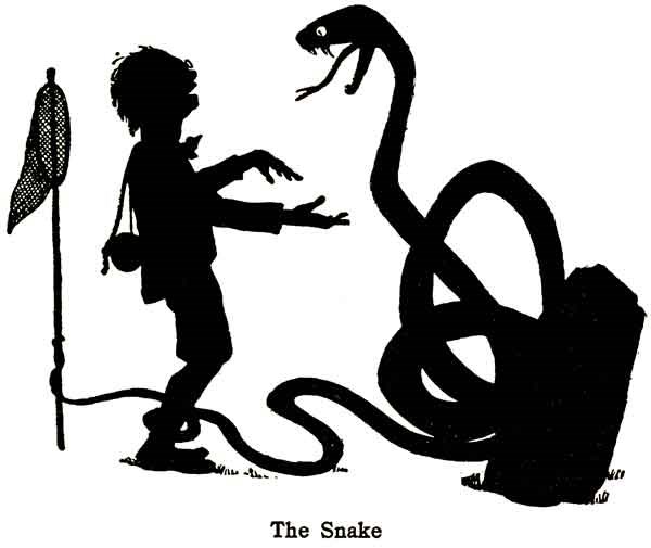 "That's well," said the snake. "I have been trying to get out for two days, and, Oh, how hungry I am. I must have something to eat, and there is nobody around, so I must eat you."