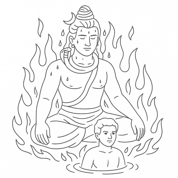 В одном из далёких времён, когда мир содрогался от борьбы Богов и Асуров, Шива пребывал в глубокой медитации. Он отрёкся от внешнего мира, погрузившись в огонь внутреннего молчания. И тогда, из капли пота, стекающей по его лбу, родился ребёнок – сверкающий, как расплавленный металл, с глазами, полными неугасимого огня.