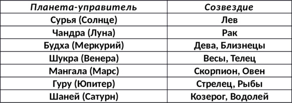 В таблице 1.1 показано, какое положение, в конце концов, заняли планеты, вступив во владение созвездиями зодиака.