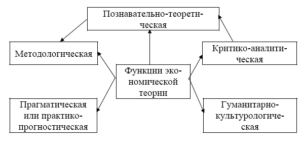 В числе основных функций (задач) экономической теории можно выделить пять: познавательно-теоретическая, методологическая, прагматическая, или практико-прогностическая, критико-аналитическая, гуманитарно-культурологическая.