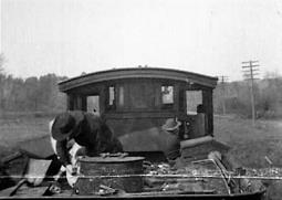 Следующая сцена – опять павильон, интерьер почтового вагона, в который впечатан вид из раскрытых дверей вагона. Бандиты убивают курьера и взрывают сейф. Далее мы опять видим натуру – бандит схватился с кочегаром на тендере паровоза. Преступник жестоко убивает кочегара – точнее, уже его чучело, как хорошо видно по окружающему поезд пейзажу до и после прямой монтажной склейки – и сбрасывают труп с поезда (Рисунок 19).