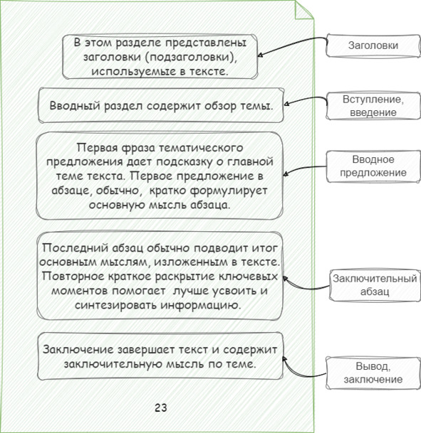 Рисунок 3 – Элементы текста для эффективного скимминга и примеры конкретной информации.
