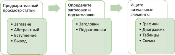 1. Предпросмотр статьи. Читатель должен предварительно ознакомиться со статьей, прочитав заголовок, аннотацию, введение и заключение. Это позволит сформировать общее представление об основных идеях статьи и её целях (рисунок 2).