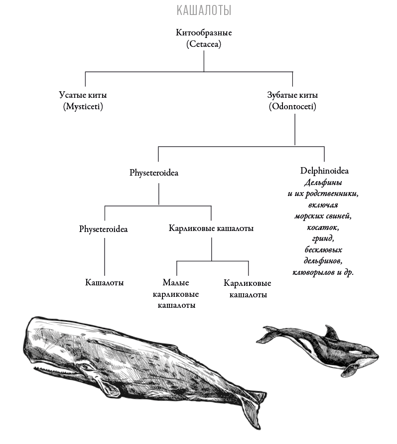 Кашалоты – единственные уцелевшие до наших дней представители семейства кашалотовых, Physeteridae, возраст которого насчитывает более 20 миллионов лет. Еще дюжина китов, когда-то принадлежавшая к этому семейству, давно канула в небытие. Левиафан – последняя струйка некогда мощного потока, который питал воды океанов на изобильной Земле в дочеловеческие времена.
