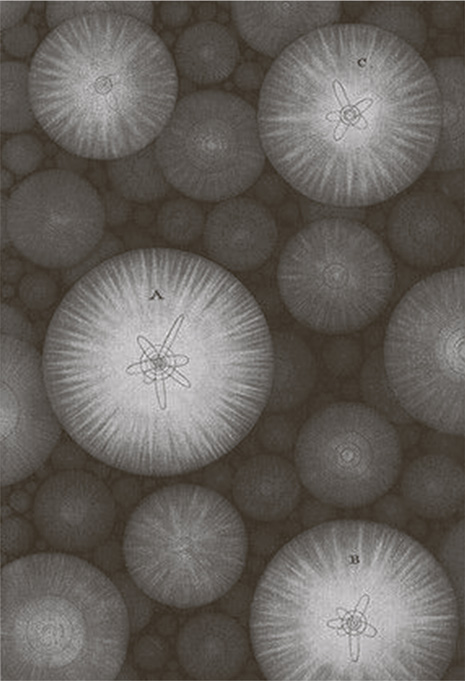 На следующем рисунке Томас Райт перескакивает через пару ступеней в градации, и мы видим сразу несколько систем с розетками кометных орбит. Он определенно понимал, что небо заполнено звездными системами, более или менее схожими с нашей, и в своей книге 1750 г. выразил это понимание так же наглядно, как и на рисунке, которым, кстати, впервые заявил, что видимые нами в ночном небе звезды – это часть звездного скопления, сейчас известного как галактика Млечный Путь, обладающего некой формой и неким центром.