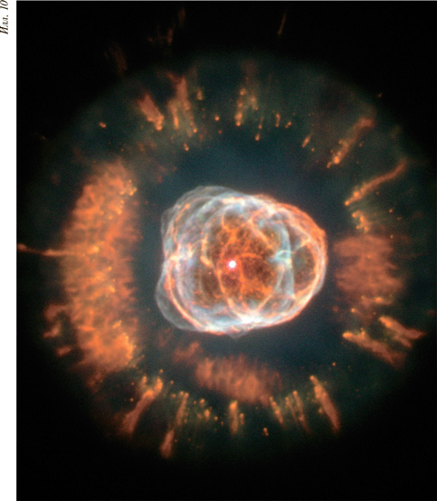 10 000 лет назад это газо-пылевое гало было частью центральной звезды. Стареющая звезда чередой вспышек вытеснила свои внешние слои в космос, формируя так называемую планетарную туманность. Аналогичная участь уготована со временем всем обычным звездам вроде Солнца.