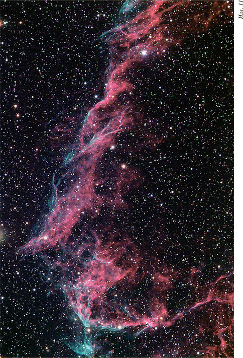 Эти светящиеся волокна – часть расширяющихся остатков сверхновой, звезды, взорвавшейся около 5000 лет назад в созвездии Лебедь.