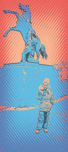 – Скульптуры коней на Аничковом мосту стали одним из популярнейших символов Петербурга. Глядя на них, мы можем наблюдать историю укрощения коней: одна статуя показывает нам, что юноша пытается схватить коня, так сказать, поединок только начинается. Вторая передаёт сильнейшую борьбу, в которой конь почти вырывается на свободу. В третьей же скульптуре борьба постепенно угасает, а в четвёртой мы видим, как укротитель спокойно шагает рядом с конём. Конь укрощён!