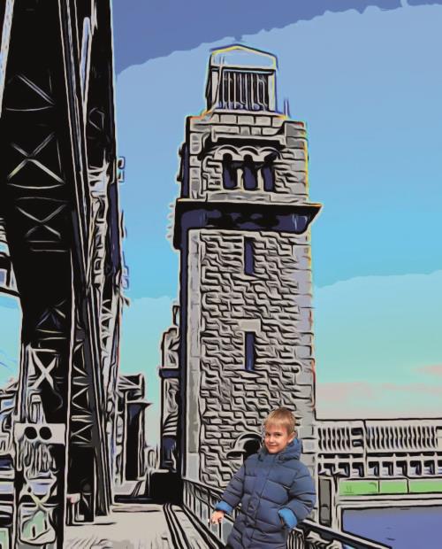 Изначально мост был назван в честь императора Петра Великого. Торжественное открытие прошло в 1911 году. К стенам башен моста прикреплено 6 бронзовых досок, на которых запечатлены имена тех, кто участвовал в его строительстве. А ещё, Фитилёк, ты знаешь, существует легенда о том, что одна из миллиона заклёпок на этом мосту сделана из чистого золота, просто закрашена в один цвет со всеми остальными, – говорил Анатолий.