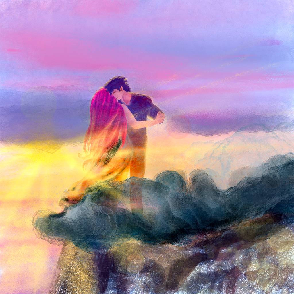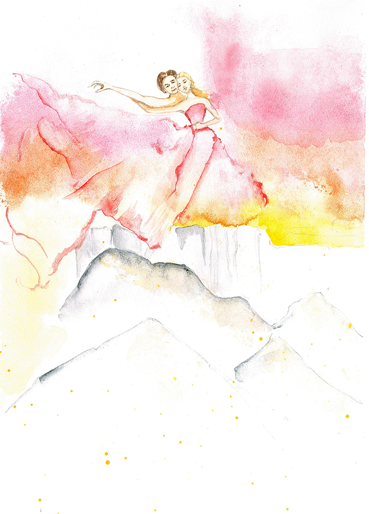 А потом мы вместе оказались на высокой скале, серой с белыми прожилками. Мы танцевали прямо у обрыва на колючих камнях, но эти камни не ранили наши ноги. Потому что у ветра нет ног, зато есть сердце, способное вместить все.