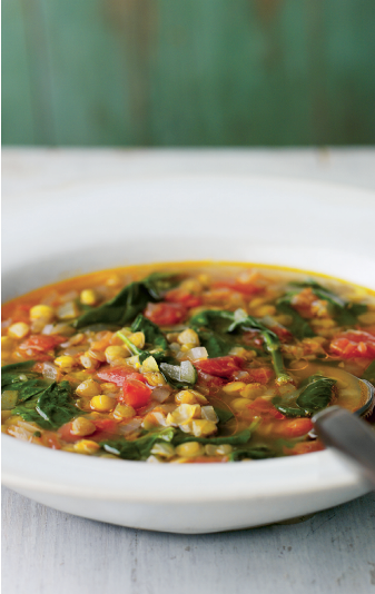 This colourful, hearty soup is packed with flavour. You can use either chicken or vegetarian stock.