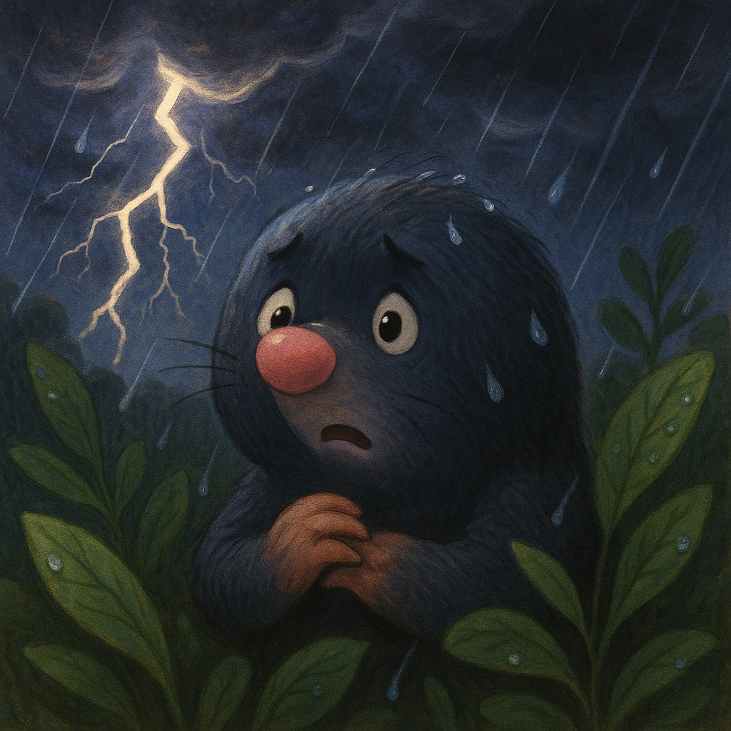 Костя был добрым и любознательным. Он обожал строить туннели, слушать, как корешки шуршат в земле, и как по ней топают жучки. Но была одна вещь, от которой Костя каждый раз пугался до дрожи в лапках.