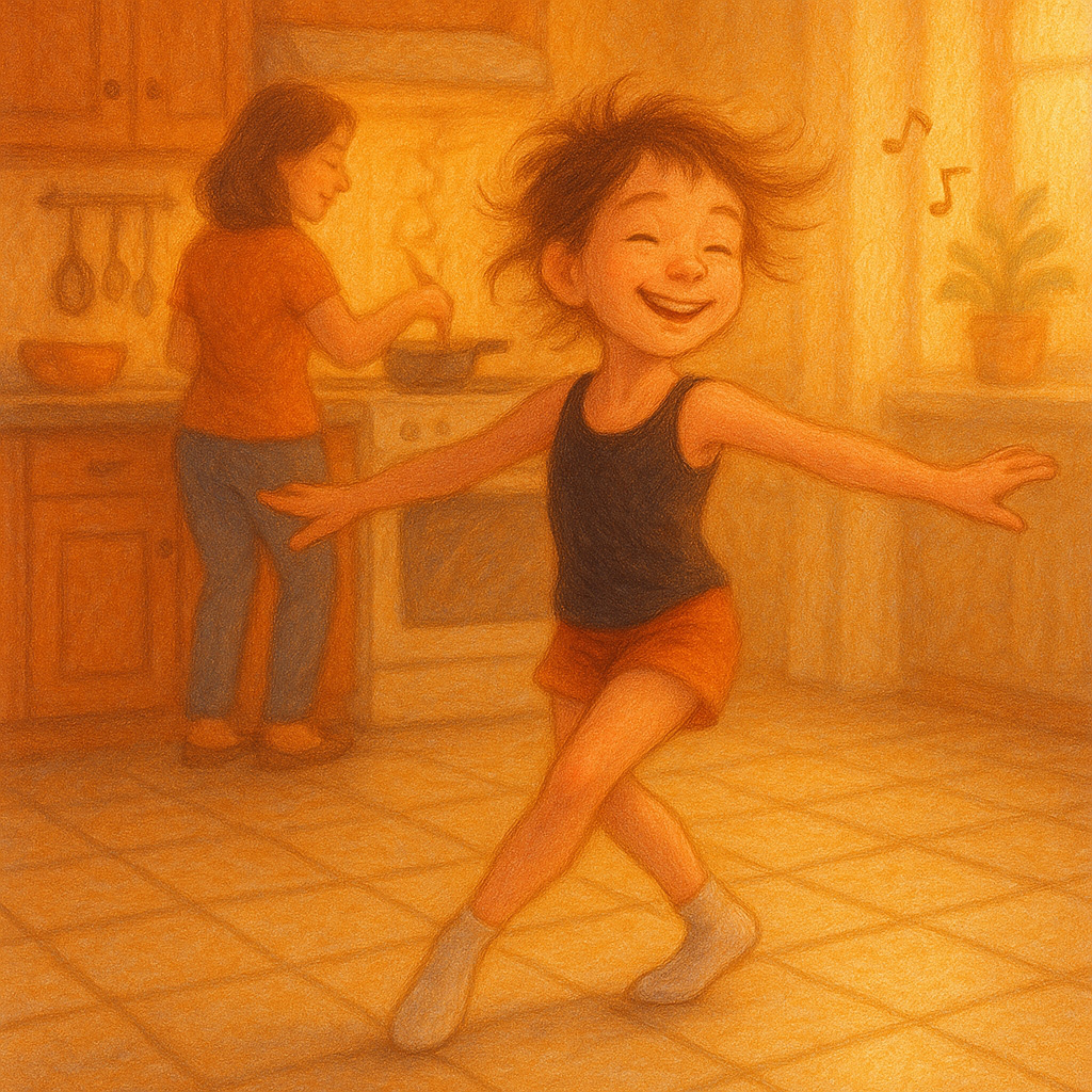 Иногда кухня становится сценой. Особенно когда мама не видит.