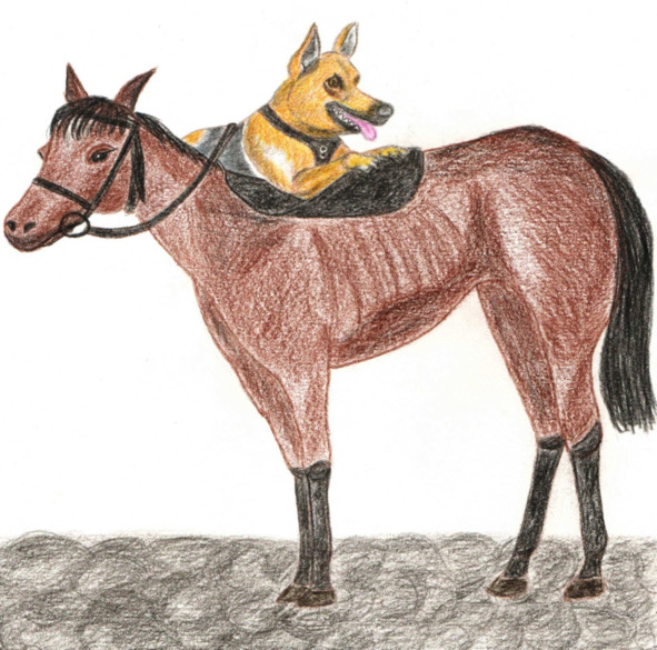 По месту службы – однополчане,а по рождению – односельчане.Всё дело в том, что на границеслужили вместе конь и пёс.Хозяин у них был военныйи на границу их отвёз.Конь лихо скачет по горам,а пёс ведёт погоню там.И если кто-нибудь из нихвнезапно ранен был,то быстрый конь грустил,то верный пёс грустил.Так служат на границе намлишь только верные друзья:овчарка – пёс и конь-рысак:отважно, верно, благородно.