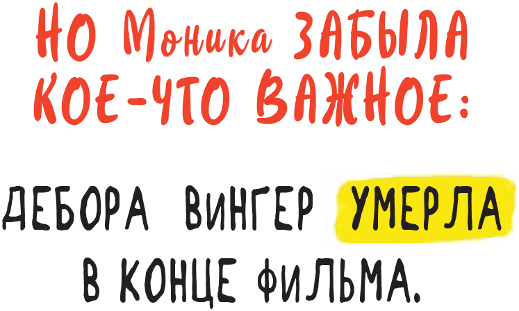 «Ой». Моника впала в ступор и не знала, что сказать. Она имела в виду именно этот фильм, но хотела рассказать о смешных сценах из него. Моника старалась реагировать на все с юмором, такая у нее была привычка – даже когда было страшно.