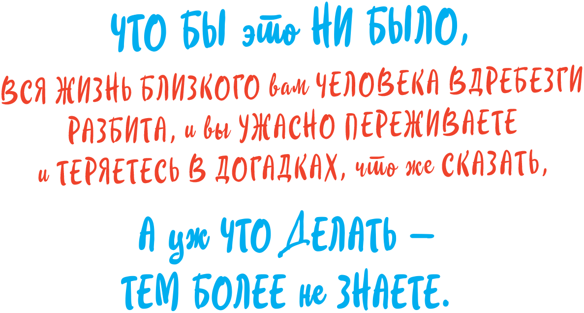 ЕСЛИ ВЫ НИКАК НЕ МОЖЕТЕ ПОНЯТЬ, КАК ПОДДЕРЖАТЬ ДРУГОГО ЧЕЛОВЕКА В ТРУДНОЕ ДЛЯ НЕГО ВРЕМЯ, ЗНАЙТЕ: ВЫ НЕ ОДИНОКИ.