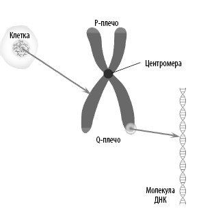 Две копии ДНК, или сестринские хроматиды, сближаются и склеиваются в корсетоподобной перетяжке – центромере. Она разделяет хромосому на две части, или плеча. Каждую хромосому образует своя двойная спираль с собственным набором связанных генов.