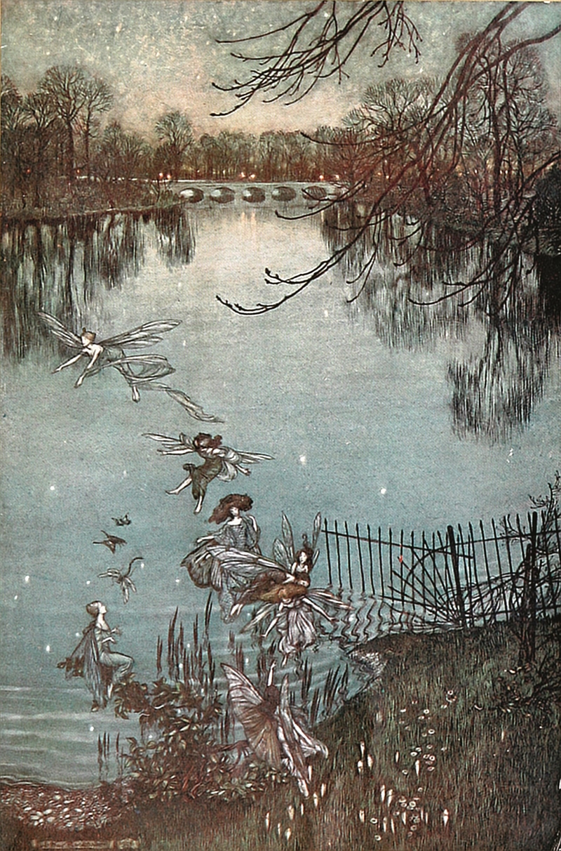 Иногда, когда Питер сидел на берегу, негромко наигрывая на дудочке, его охватывали грустные мысли, отчего музыка тоже становилась грустной. А грустил он потому, что никак не мог добраться до сада, хотя тот виднелся под аркой моста. Питер знал, что ему никогда не бывать настоящим человеком, да вряд ли он и хотел им стать, но как он жаждал играть в те же игры, в какие играют все остальные дети, а лучшее место для игр, конечно же, Кенсингтонский сад. Птицы рассказывали Питеру, как играют мальчики и девочки, и слёзы сожаления навёртывались ему на глаза.