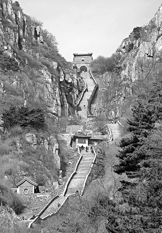 Чтобы достичь вершины Тайшаня, нужно было преодолеть тысячи ступеней. Император Цинь Шихуанди попытался сделать это на своей колеснице, а некоторые современные паломники предпочитают канатную дорогу