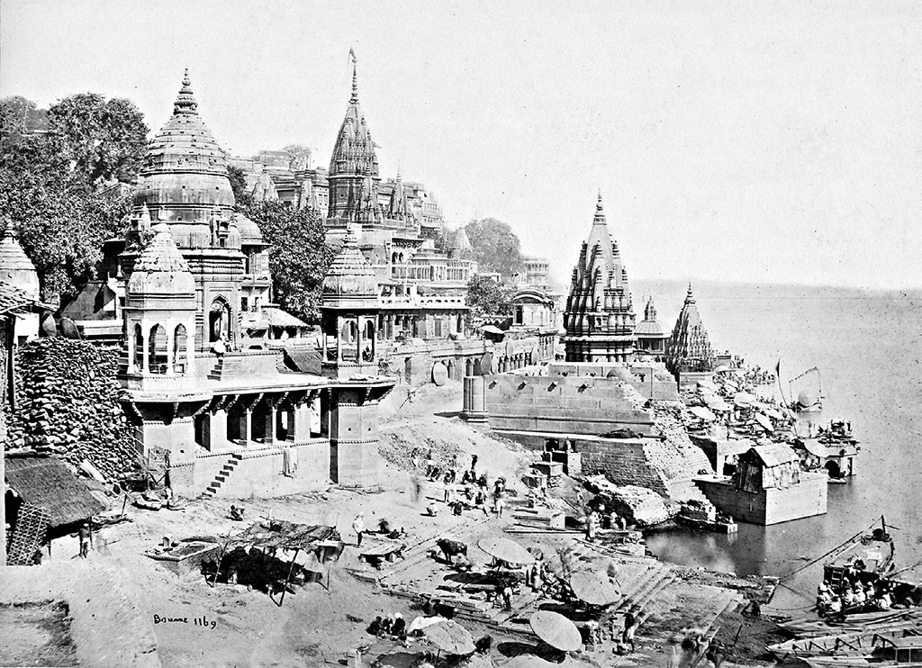 В городе тысячи храмов, и даже граничащие с ним населенные пункты в радиусе нескольких километров в любом направлении считаются священными. Нахождение на Ганге повышает престиж города, как и тот факт, что Варанаси в древности располагался по обоим берегам реки, благодаря чему служил переправой, что делало этот город еще более значимым, поэтому его население увеличивалось. К XIX веку регион был более густонаселенным, чем любая часть Европы, что обеспечивало город постоянным притоком местных паломников[84]. К тому времени, как американец Роберт Боун Минтерн описал свой визит в Варанаси в конце 1850-х годов, он счел, что может назвать его «священным городом Индии», местом, где богатые люди предпочитали строить большие дома на набережной, чтобы иметь возможность прожить свою жизнь у священного Ганга[85].