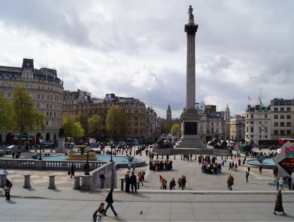 Вид на Трафальгарскую площадь с лестницы Национальной галереи.
